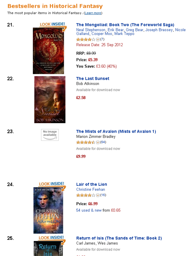Still very early days, but Bob’s book about time travel, soldiers, and Scottish lassies has started charting.