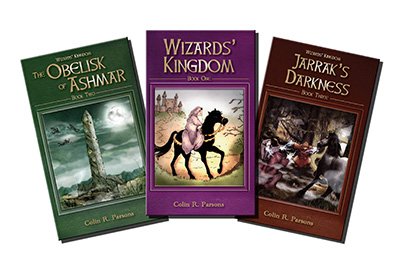 Over at our children’s imprint, The Repository of Imagination, we’re publishing an entire trilogy in one go. This is Wizards’ Kingdom: a classic good vs. evil adventure series that author Colin R. Parsons intended for 8-12 year olds, but we’ve had to set a suggested reading age of 8-80 as the grown-ups can get enough of the books.